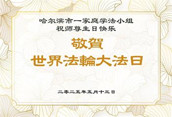 Đệ tử Đại Pháp ở Cáp Nhĩ Tân chúc mừng Ngày Pháp Luân Đại Pháp Thế giới và kính chúc Sư tôn sinh nhật vui vẻ! (19 lời chúc)