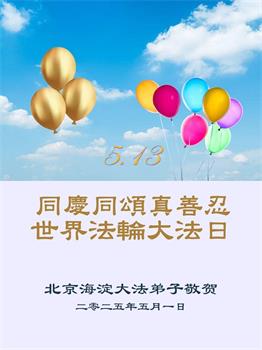 Đệ tử Đại Pháp ở Bắc Kinh chúc mừng Ngày Pháp Luân Đại Pháp Thế giới và kính chúc Sư tôn sinh nhật vui vẻ! (20 lời chúc)