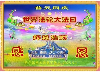 Đệ tử Đại Pháp ở Cáp Nhĩ Tân chúc mừng Ngày Pháp Luân Đại Pháp Thế giới và kính chúc Sư tôn sinh nhật vui vẻ! (19 lời chúc)