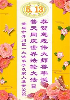 Đệ tử Đại Pháp ở Trùng Khánh chúc mừng Ngày Pháp Luân Đại Pháp Thế giới và kính chúc Sư tôn sinh nhật vui vẻ! (19 lời chúc)
