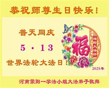 Đệ tử Đại Pháp tại Trịnh Châu chúc mừng Ngày Pháp Luân Đại Pháp Thế giới và kính chúc Sư tôn sinh nhật vui vẻ! (19 lời chúc)