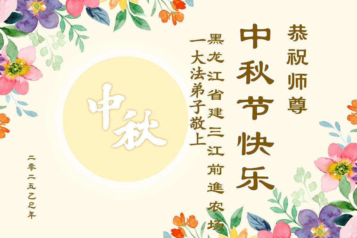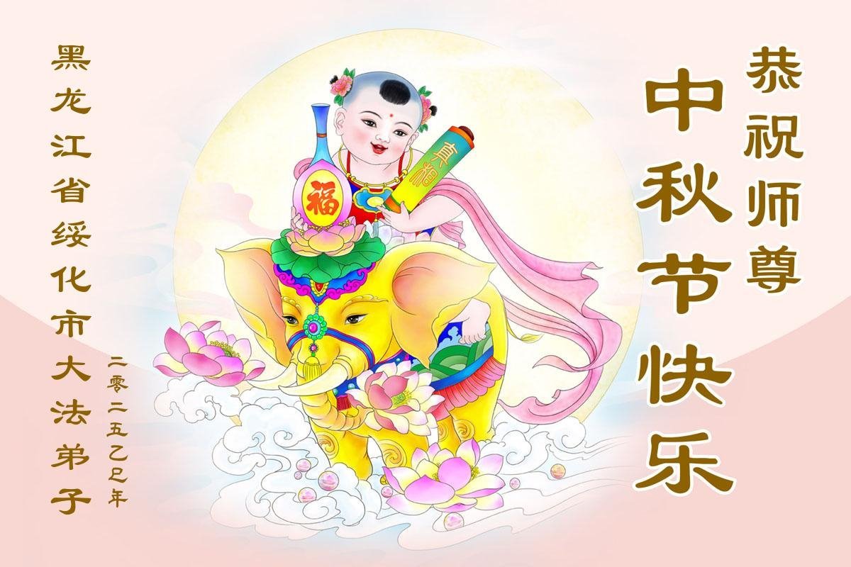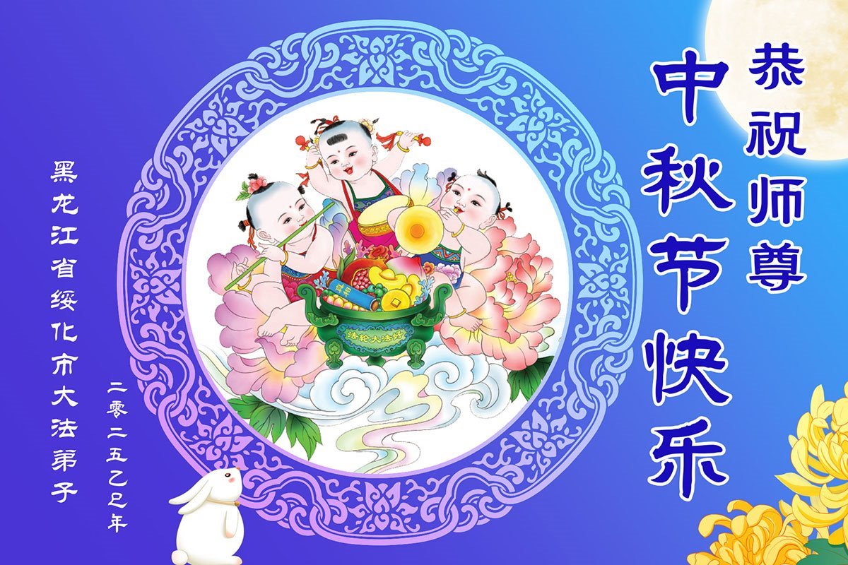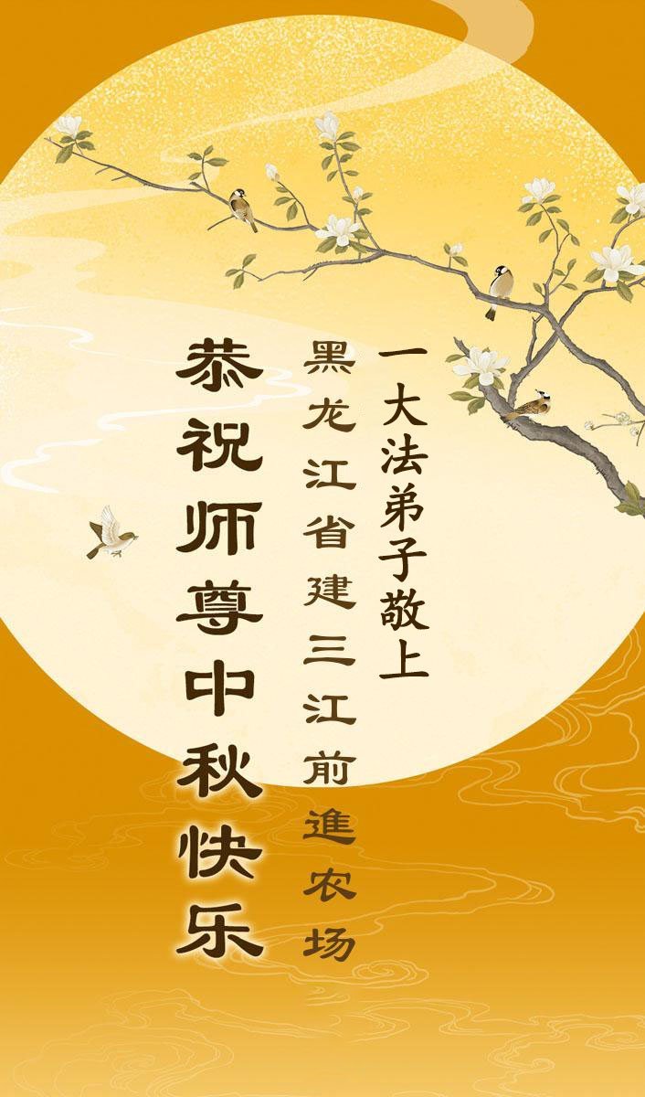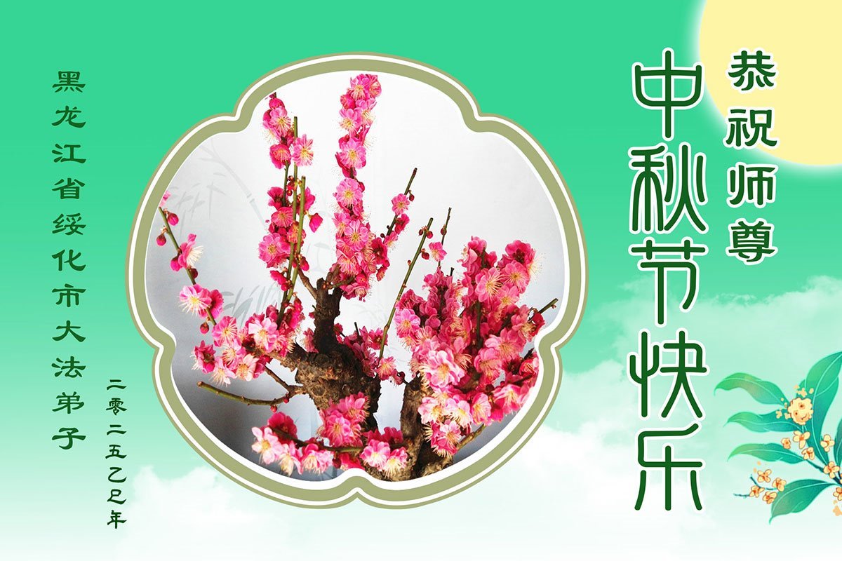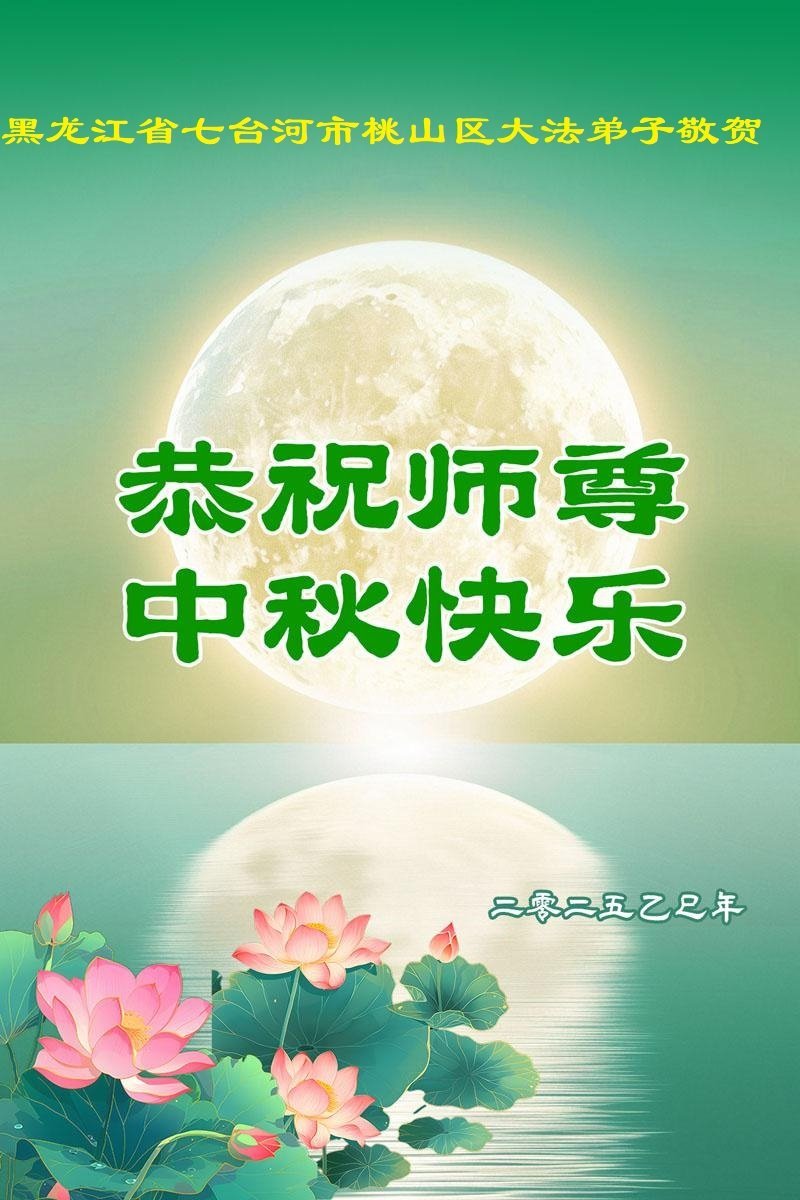 Nhân dịp Tết Trung thu, đệ tử Đại Pháp cùng gia đình ở các địa khu sau đây tại Hắc Long Giang, Trung Quốc Đại lục kính chúc Sư tôn Tết Trung thu vui vẻ!