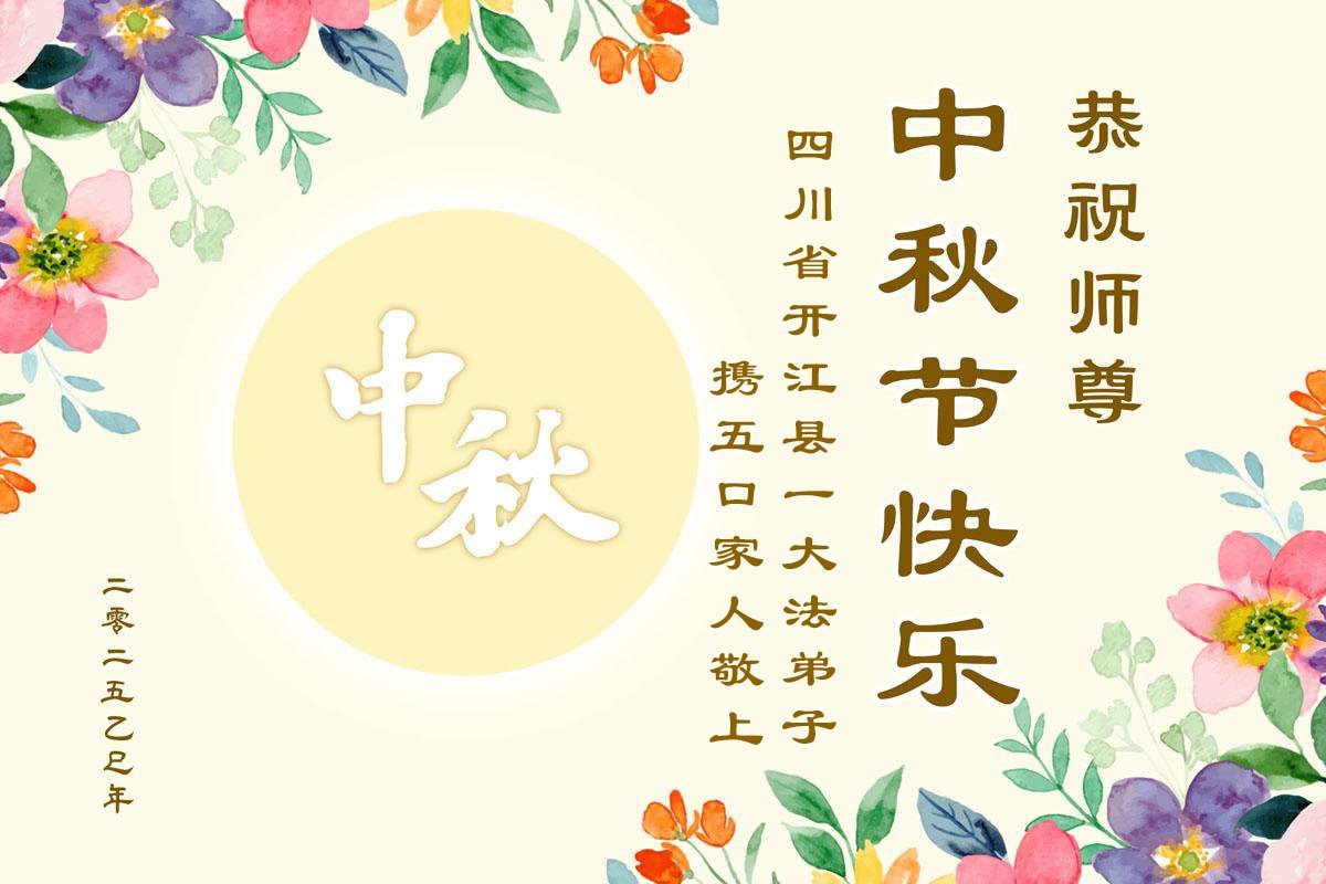 [MINH HUỆ 03-10-2025] Đệ tử Đại Pháp tại các khu vực sau đây thuộc tỉnh Tứ Xuyên, Trung Quốc Đại lục kính chúc Sư tôn Tết Trung thu vui vẻ!