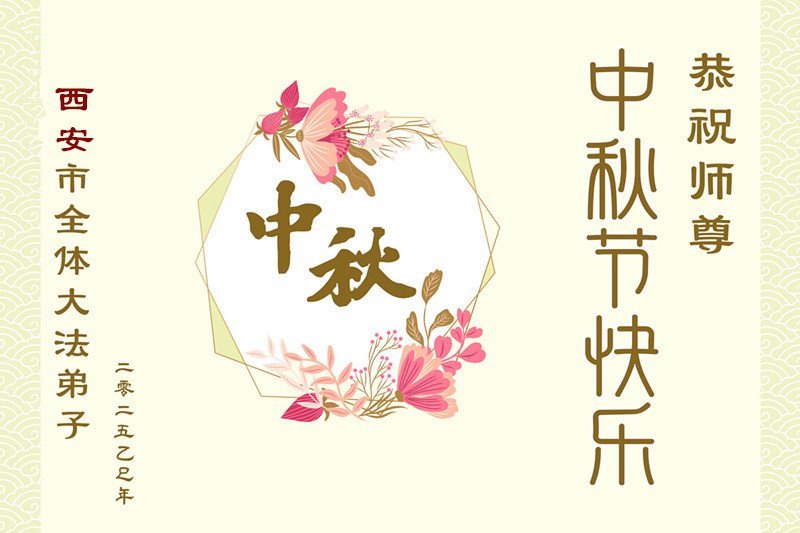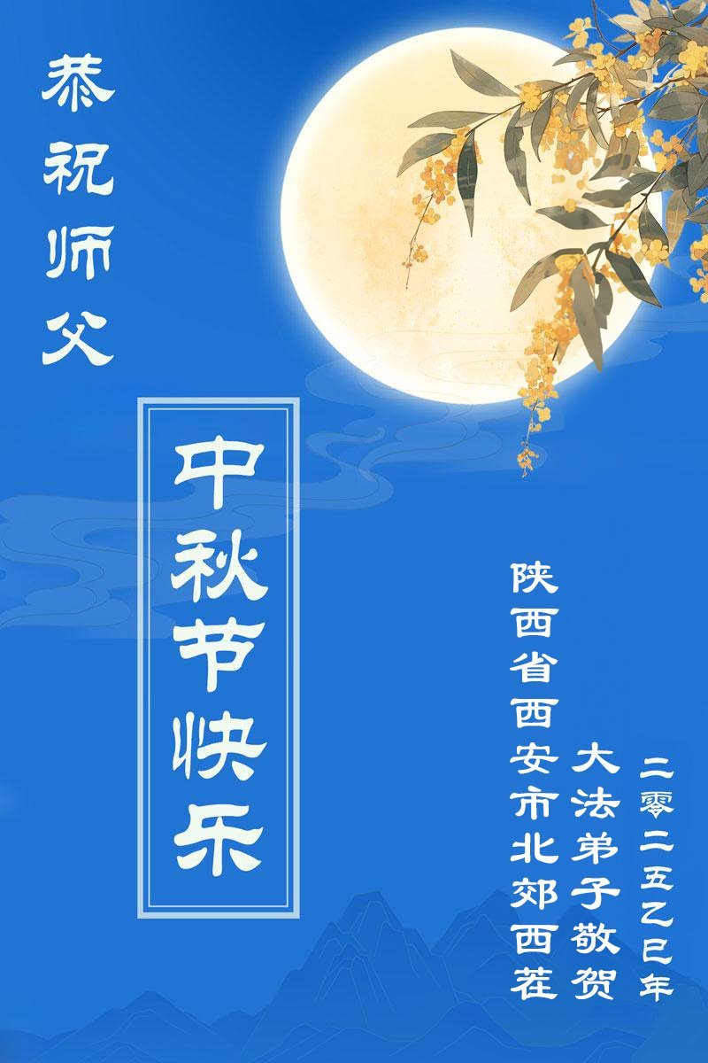 [MINH HUỆ 03-10-2025] Đệ tử Đại Pháp tại các khu vực sau đây thuộc An Huy, tỉnh Thiểm Tây, Trung Quốc Đại lục kính chúc Sư tôn Tết Trung thu vui vẻ!