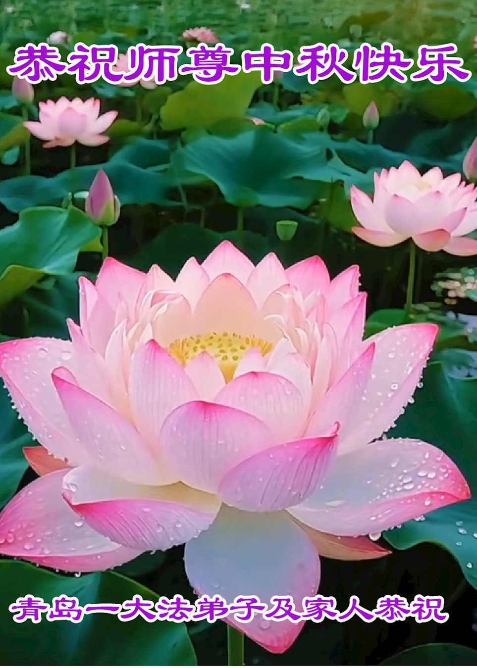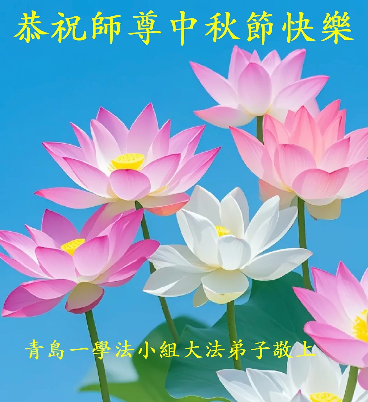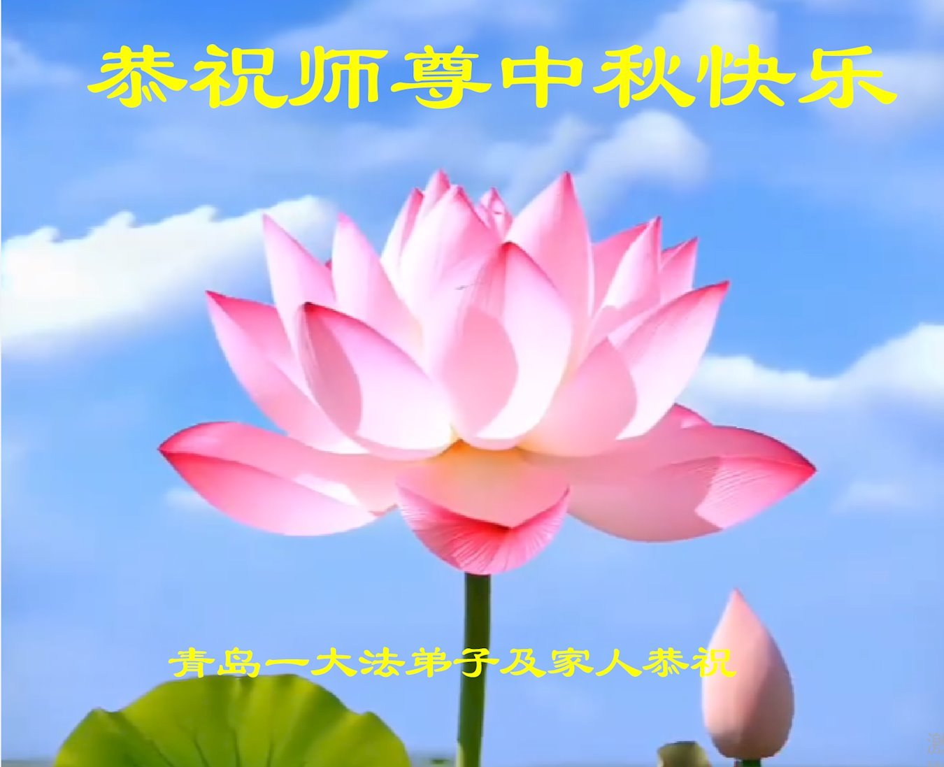 Nhân dịp Tết Trung thu, đệ tử Đại Pháp cùng gia đình ở các địa khu sau đây thuộc Thanh Đảo, tỉnh Sơn Đông, Trung Quốc Đại lục kính chúc Sư tôn Tết Trung thu vui vẻ!