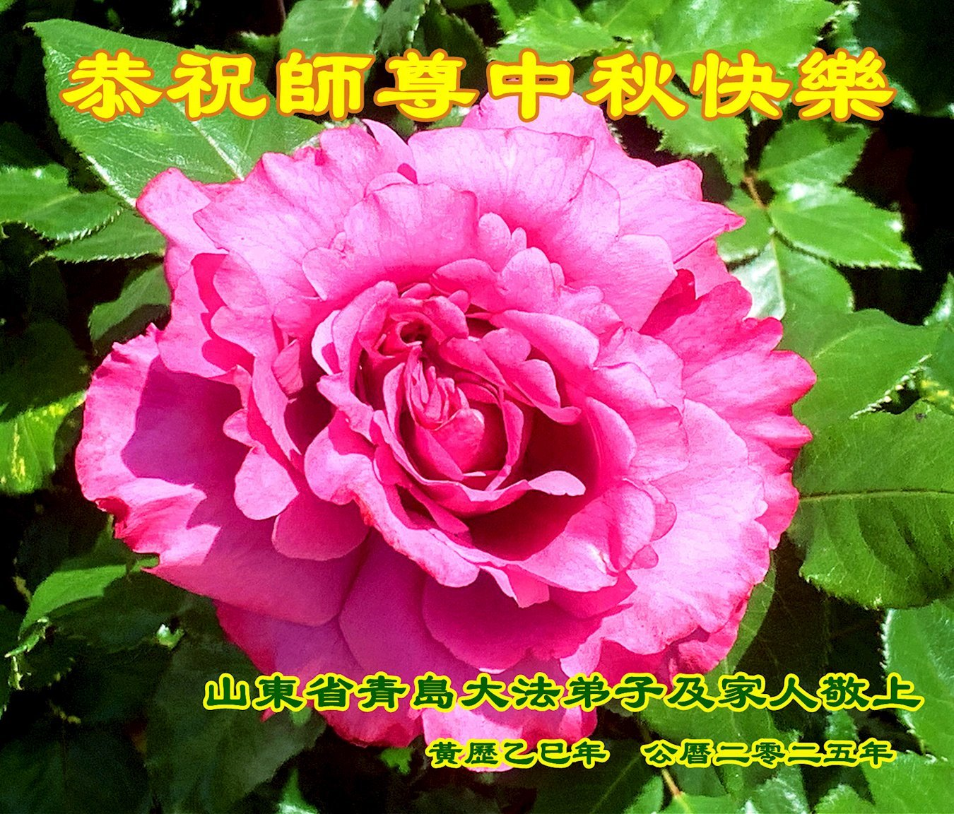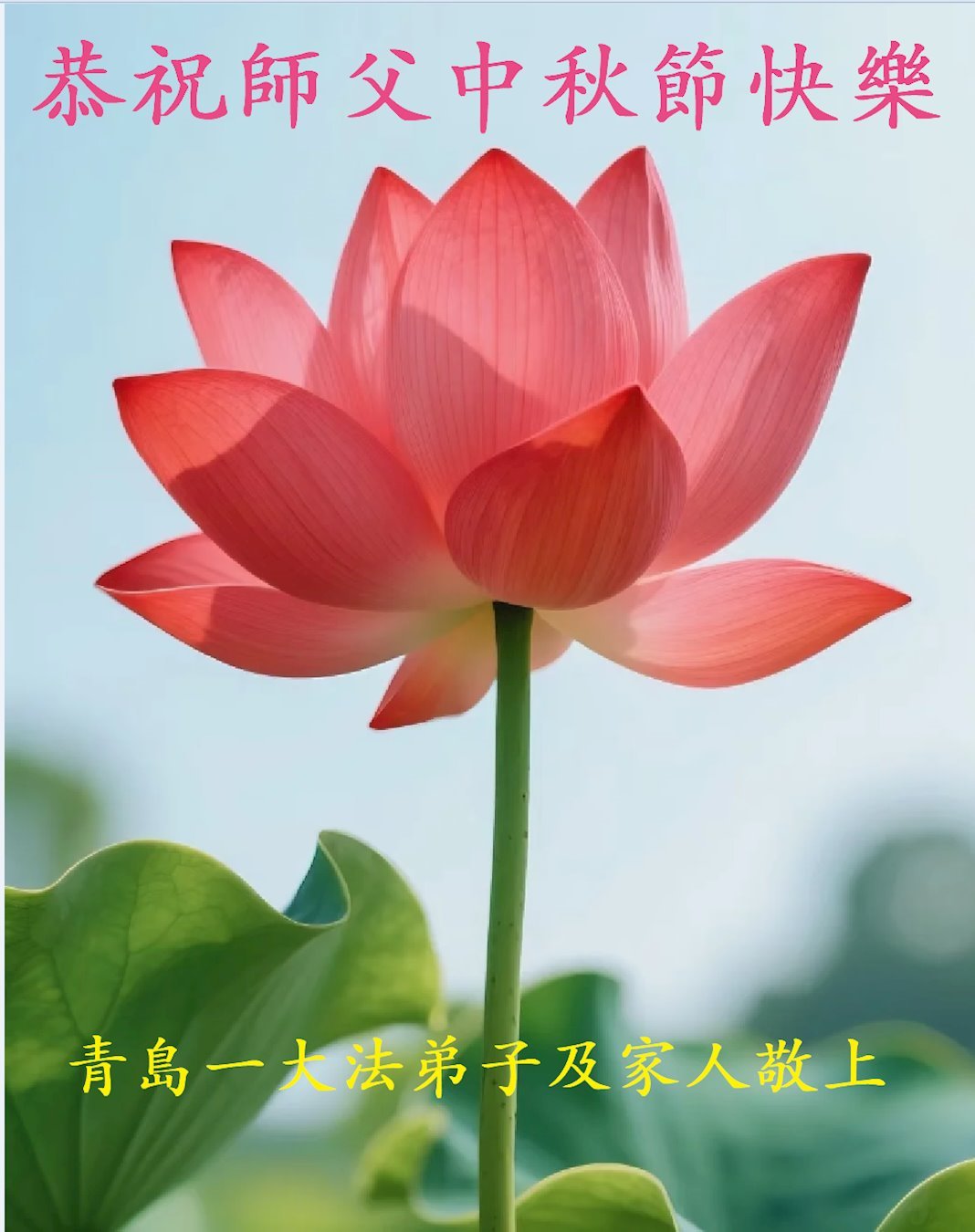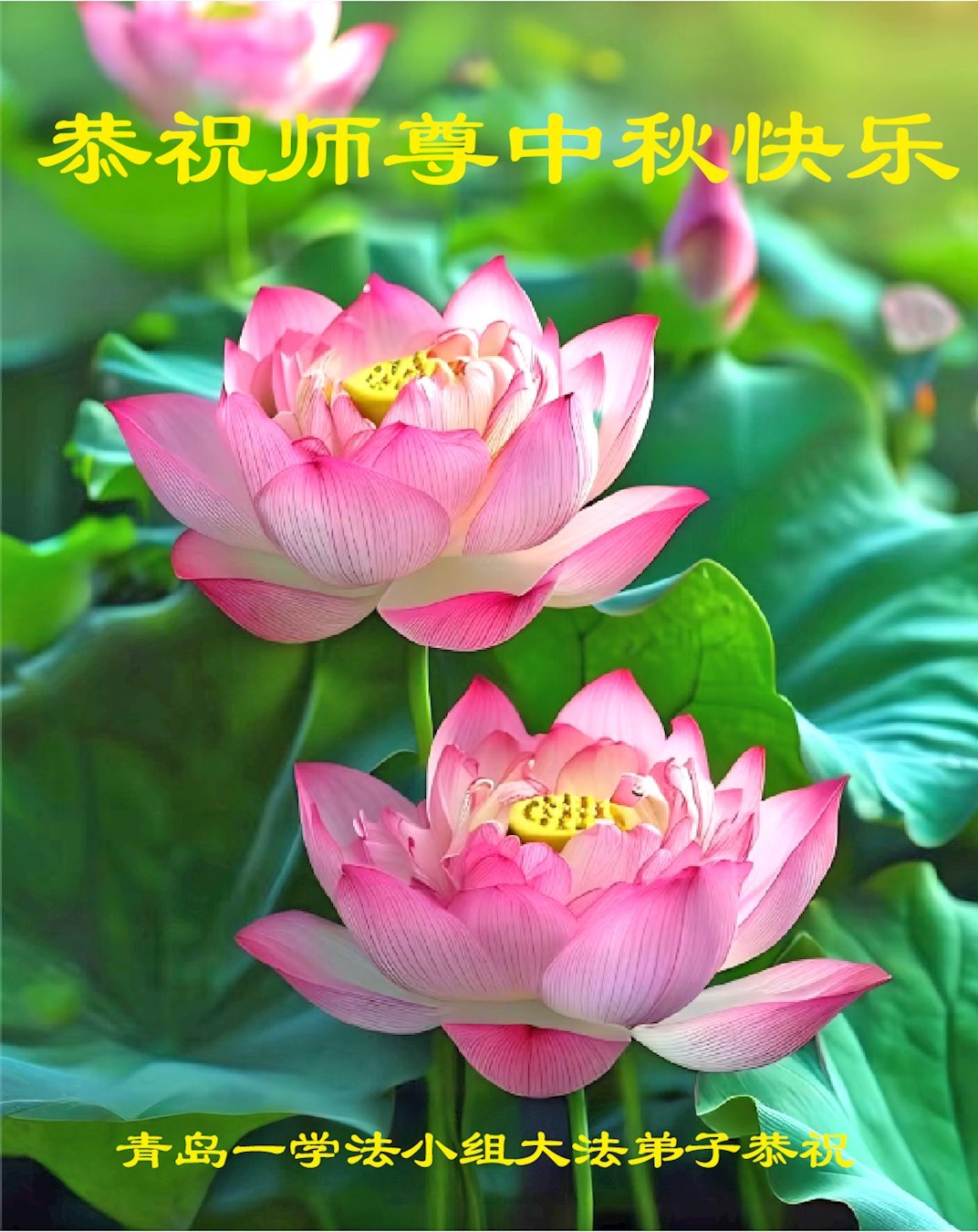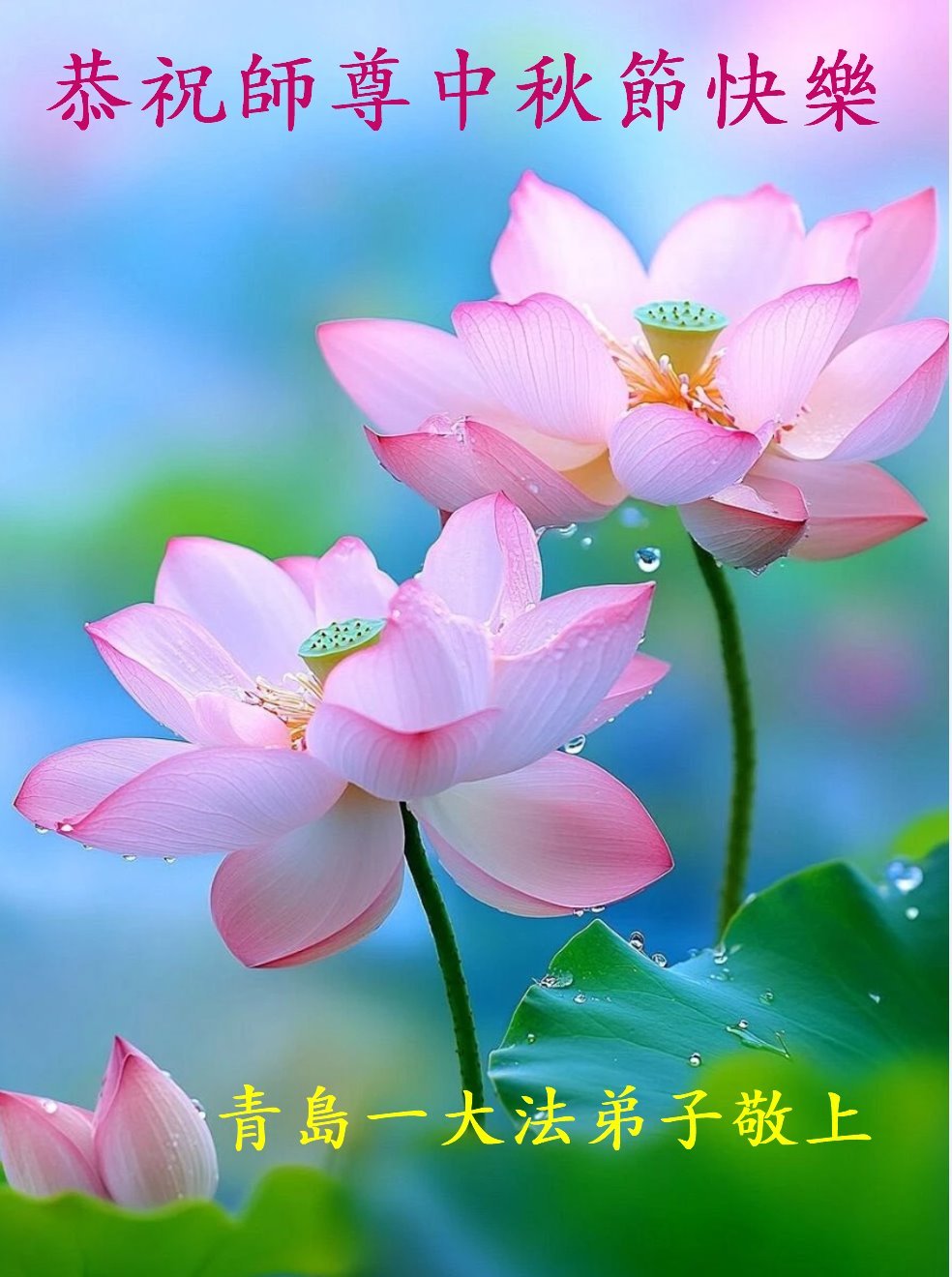 Nhân dịp Tết Trung thu, đệ tử Đại Pháp cùng gia đình ở các địa khu sau đây thuộc Thanh Đảo, tỉnh Sơn Đông, Trung Quốc Đại lục kính chúc Sư tôn Tết Trung thu vui vẻ!