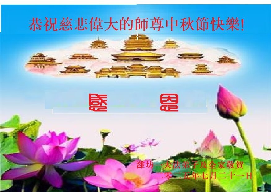 Nhân dịp Tết Trung thu, đệ tử Đại Pháp cùng gia đình ở các địa khu sau đây thuộc Duy Phường, tỉnh Sơn Đông, Trung Quốc Đại lục kính chúc Sư tôn Tết Trung thu vui vẻ!