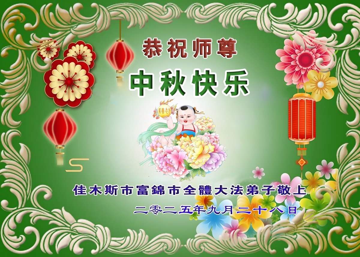 [MINH HUỆ 03-10-2025] Đệ tử Đại Pháp cùng gia đình ở khắp các huyện thị và tỉnh thành dưới đây tại Giai Mộc Tư tỉnh Hắc Long Giang kính chúc Sư tôn Tết Trung thu vui vẻ!