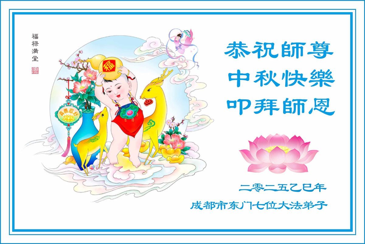 [MINH HUỆ 03-10-2025] Đệ tử Đại Pháp cùng gia đình ở khắp các huyện thị và tỉnh thành dưới đây tại Thành Đô tỉnh Tứ Xuyên kính chúc Sư tôn Tết Trung thu vui vẻ!